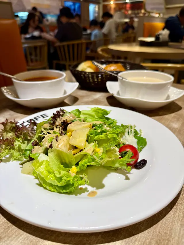 餐前前菜係雜菜沙律,雖然唔算特別,但勝在新鮮爽口,作為開胃菜都算合格。飲品方面我點咗大檸檬可樂,幾有氣又唔會死甜,朋友嗌咗凍檸水走甜,啱晒夏天飲,清新解膩。最後送嘅甜品係啫喱,傳統款,冇咩特別,不過幫個口腔清一清味都OK。