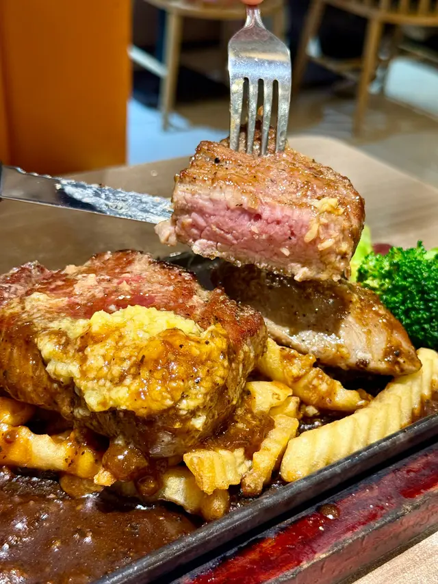 我哋點咗鐵板鵝肝牛柳做主角,呢個真係有驚喜,牛柳煎到外層香口,入面保持到嫩滑唔鞋口,鵝肝厚切唔油膩,入口即化,超正!我仲加咗蒜蓉一齊食,香味即刻Level Up,啲汁撈埋白飯或者意粉一定掂晒。