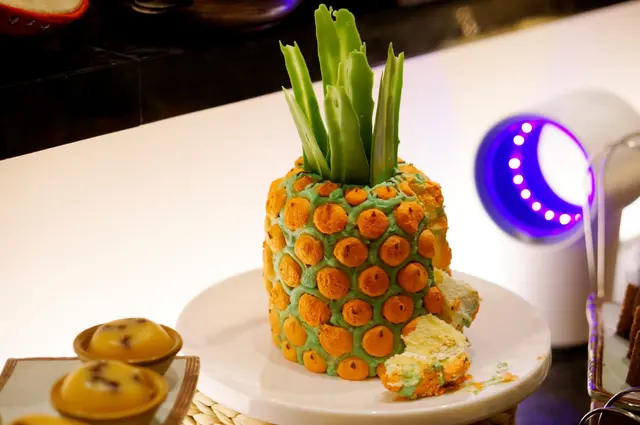 呢個菠蘿造型的蛋糕,除咗賣相吸引,入口都幾特別呀,加上琳琅滿目的甜品,講到甜品我最愛的非斑蘭芝士撻莫屬。
