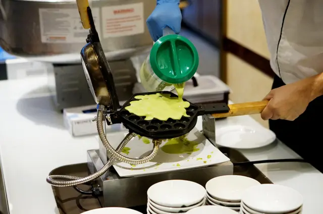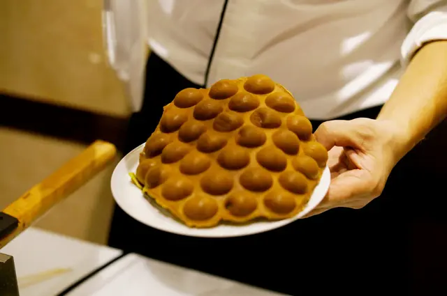 仲有即製的班蘭雞蛋仔,由師傅即場焗製,孖寶都好有耐心等食喔!