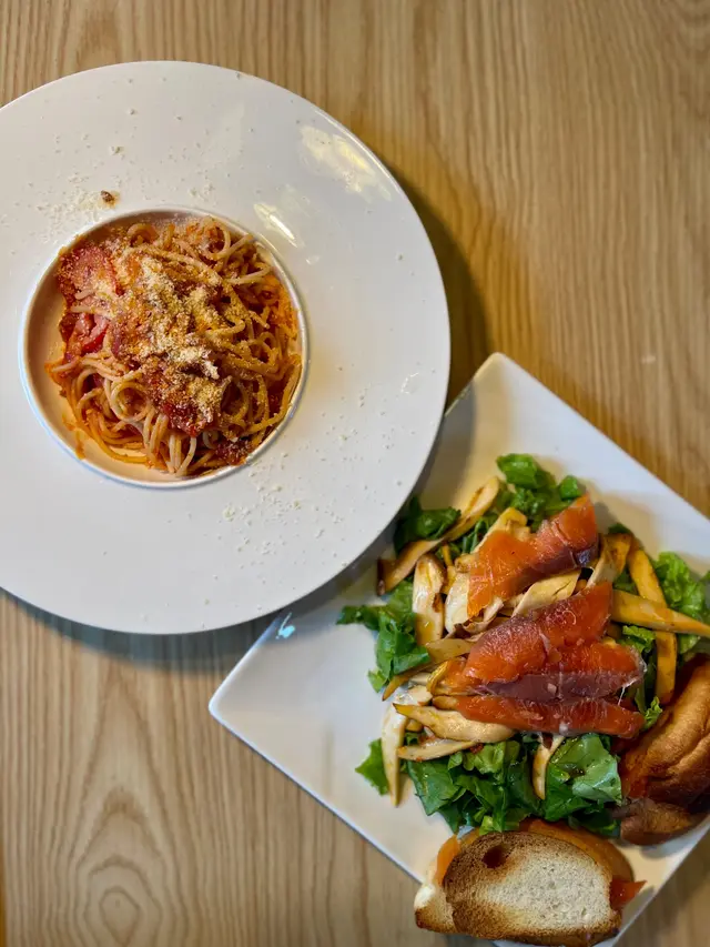 例如黑醋沙律煙三文魚配法包、炸雞扒沙律、白汁煙鴨胸意粉或螺絲粉、是日蛋糕等,還有多款特飲,想玩又想食好野的話不坊一試啦!