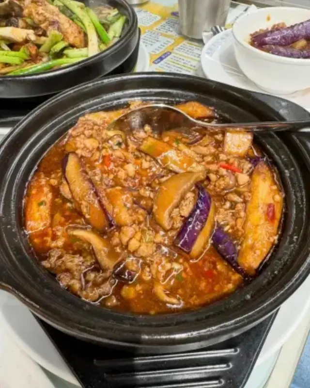 熱辣辣用砂煲上,香氣撲鼻!茄子煮到軟腍入味,完全冇苦澀味。魚香醬汁調得恰到好處,微辣開胃,仲有免治豬肉碎增加口感。最正係煲底有少少飯焦效果,撈飯食真係停唔到口!