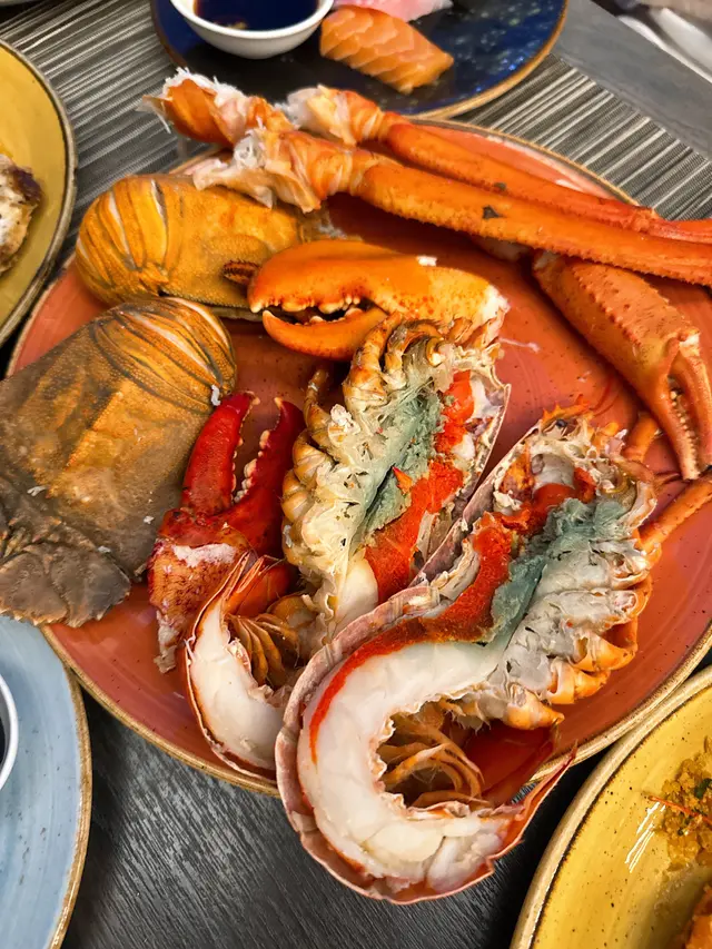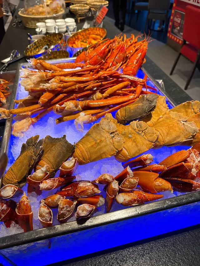 冰鎮海鮮有好多選擇,當中有波士頓龍蝦🦞、琵琶蝦、蟹腳、蟹鉗、熟蝦🦐熟蜆、青口及小龍蝦等,星期五六日及公眾假期仲有麵包蟹供應,款款都新鮮彈牙,當中encore咗幾次波士頓龍蝦同蟹鉗😋,波士頓龍蝦爆晒膏🤤,肉質超級爽口彈牙,蟹鉗啖啖肉,充滿海水嘅味道🤪