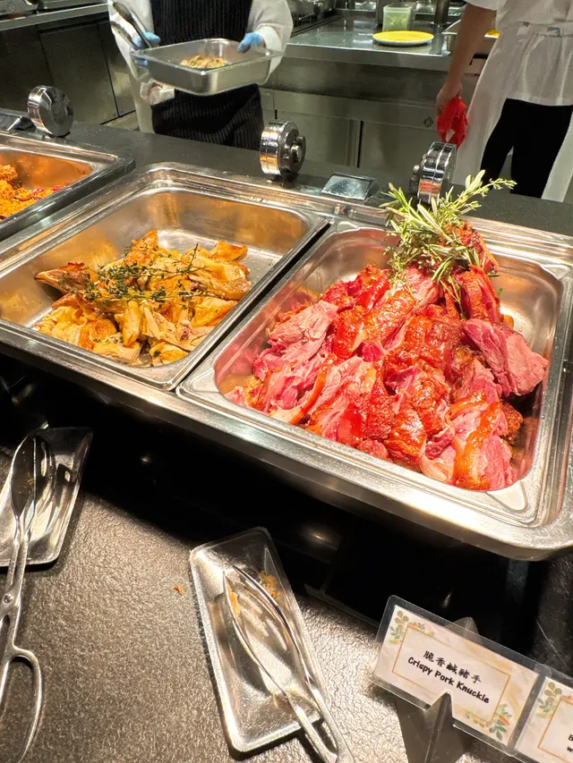 除咗沙律、芝士拼盤同煙三文魚之外,仲有好多經典廣東嘅冷盤,例如南京鹽水鴨、醉雞翼、水晶肴肉同埋雞絲粉皮😚,醉雞翼大大隻,每隻都充滿濃郁嘅花雕酒味👍🏻