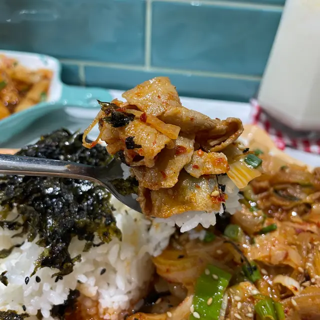 👍🏻泡菜辣炒五花腩蓋飯 $88