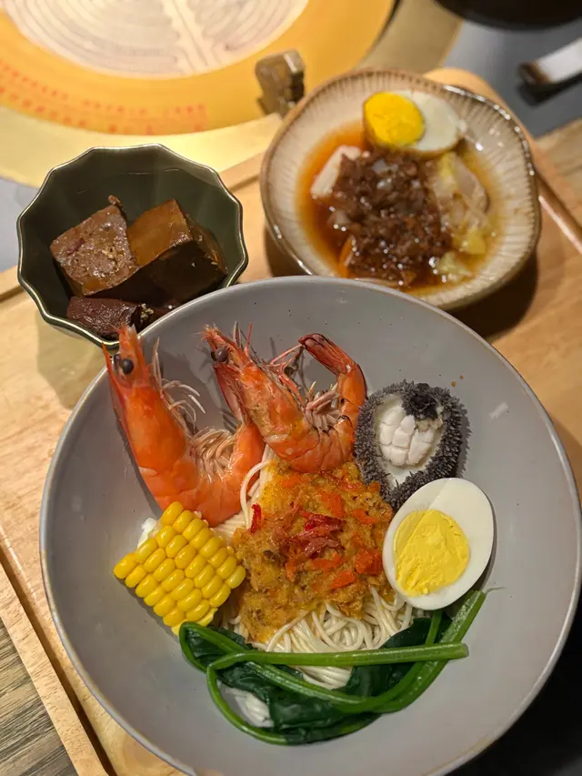 麵條幼身而彈牙,掛滿蟹粉好鮮甜,另有鮑魚同鮮蝦,蝦殼甩尾好新鮮!