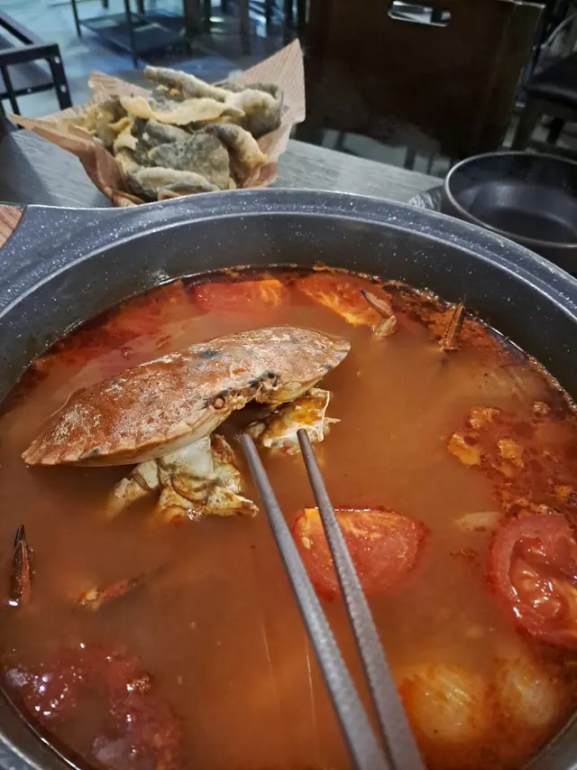 麵包蟹的蟹膏以又多又鮮甜聞名,加入自己熬製鮮茄濃湯中,將湯底鮮味昇華至另一個層次,鮮味無窮,食到停唔到😋😋