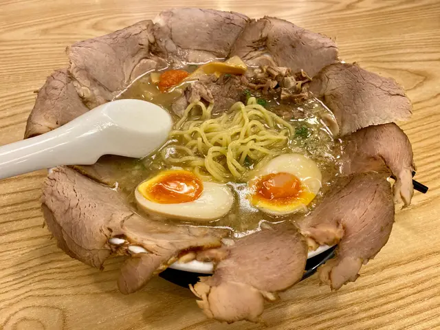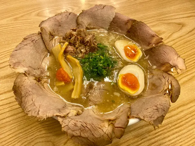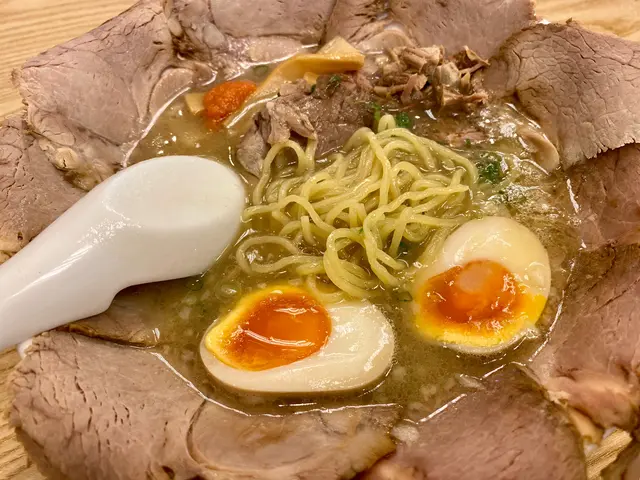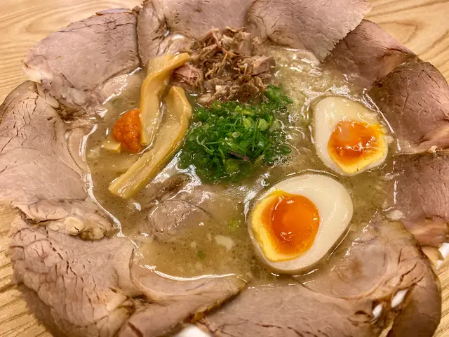 成個碗鋪滿晒叉燒,加隻糖心蛋,賣相靚靚。飲一啖湯,有豬骨鹹鮮味,估計用豬骨同雞熬成,好味,個湯仲加咗小粒豬肥膏,所以比較香口和滑😋。食片叉燒,切得好薄,有啲豬肉味。開始食麵,用日本人傳統吸啜slurping方法,拉麵連湯帶空氣,相當唔錯,竹筍亦都整得幾好食。