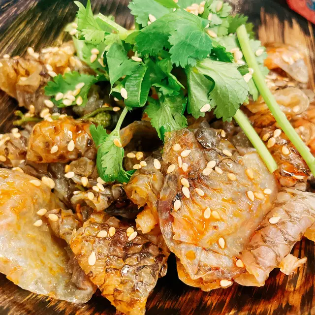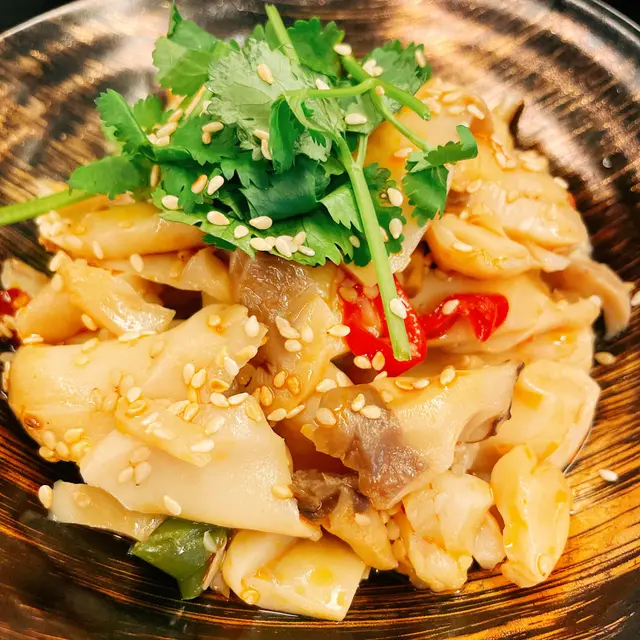 冰鎮住上枱❄️!魚皮薄到透光,咬落「嗦嗦聲」脆過薯片,藤椒油嘅麻香係慢慢滲出嚟🌶️,唔會嗆喉,反而帶出魚鮮,蘸少少醋酸香提鮮,開胃到追加一碟!