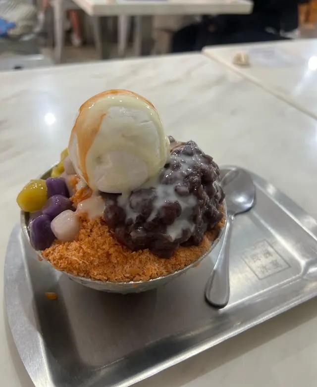 刨冰上係雲呢拿味雪糕,配料有三色芋圓及紅豆。刨冰都算刨得棉密嘅,第一啖食落去幾香泰式奶茶,又唔會話好甜,但係第二啖開始就無乜奶茶味…可能第一啖嘅味道係出於泰式奶茶醬🤣個雲呢拿雪糕上面就淋上左好少泰式奶茶醬,煉奶相對就比較多啲,所以食到有甜味都係因為個煉奶😂 個冰越食越淡咁,係好淡好淡嘅泰式奶茶味🫤 而啲芋圓唔夠煙韌 🤔 所以個人認為價錢偏貴…
