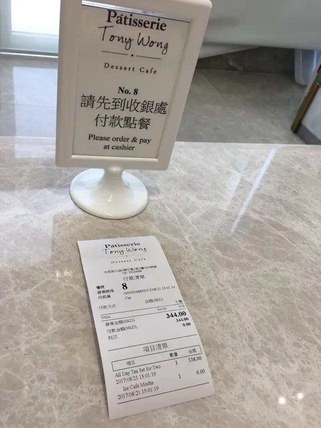 甜品大師Tony Wong在元朗有分店,立刻心癢癢想去一試,所以趁放假入元朗幫襯。下午約2:45去到形點,以為平日會比假日人流少些,怎料門外已有一大班人等位,應該跟這店新開有關係。等了一陣已被安排入座,隨即點了全日茶點套餐($338 for 2)。首先飲料送到,還以為不用等多久套餐就會到,怎料花了近45分鐘的等待,滿心期待的