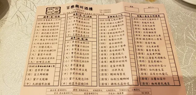 先看一看點心紙,除了有粤式的點心之後,更有潮州的鹵水食物,價錢由小點$26~鹵水頂、廚頂$48,更標榜所有食物是自家制作,絕不含味精。