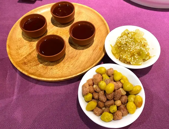 前菜: 麻香拌海蜇, 椒鹽脆鮮魷, 酒香醉鴨舌