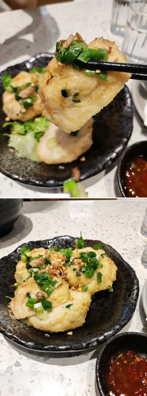 蝦餅🦐比我想像中大份,三大個蝦餅,每件切開一半,香蔥油,炸蒜,好香,食得出真材實料!