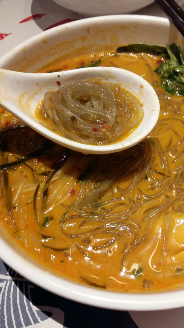 我點咗酸辣海鮮湯底黑粉絲,酸辣湯底海鮮味濃郁,第一次食黑粉絲,冇紅薯粉咗濟,但又非常掛湯,彈牙,粉絲份量多,非常飽肚。