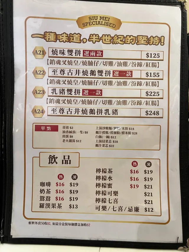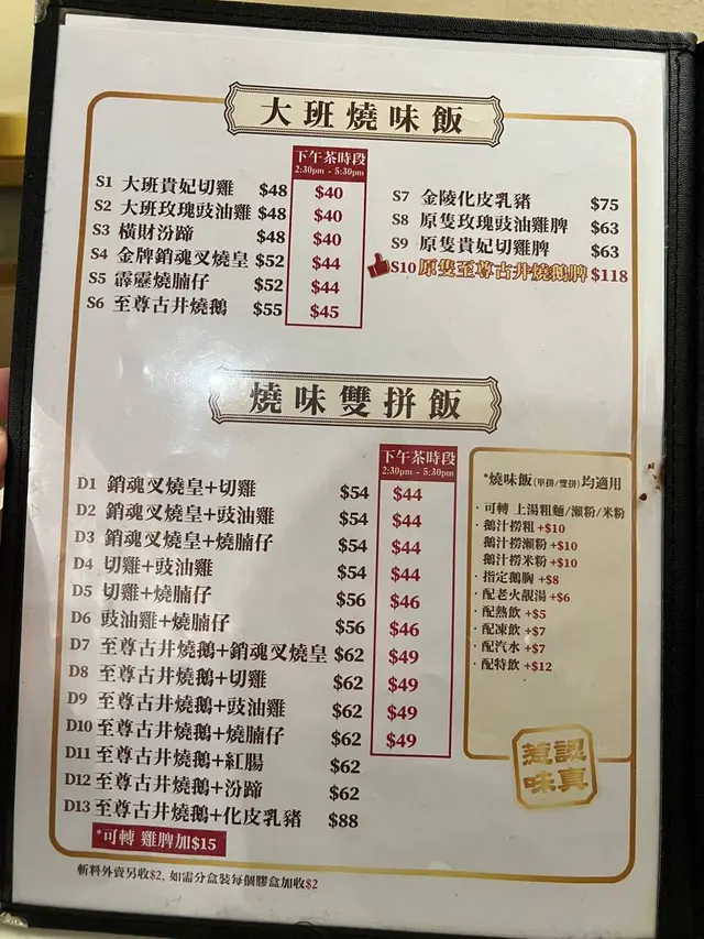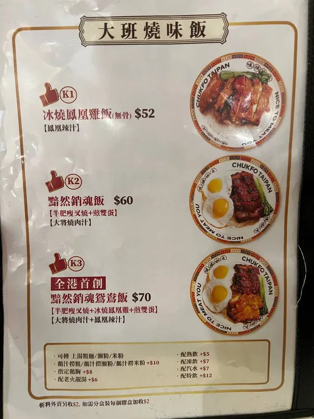 呢個名真係勁有氣勢,有三個選擇,每款都係人氣之選😮 我哋揀嘅呢個鴛鴦飯有齊半肥瘦叉燒同埋餐廳其中一樣招牌菜冰燒鳳凰雞🐥 冰燒鳳凰雞係冇骨㗎,啱晒我呢啲唔鍾意吮骨嘅人🦴 另外叉燒用上嘅大醬燒肉汁,送飯一流🐷 仲有煎雙蛋,不過我略嫌佢熟咗少少,如果係太陽蛋就更加啱我喇,個人真係好鍾意用蛋汁撈飯🍳