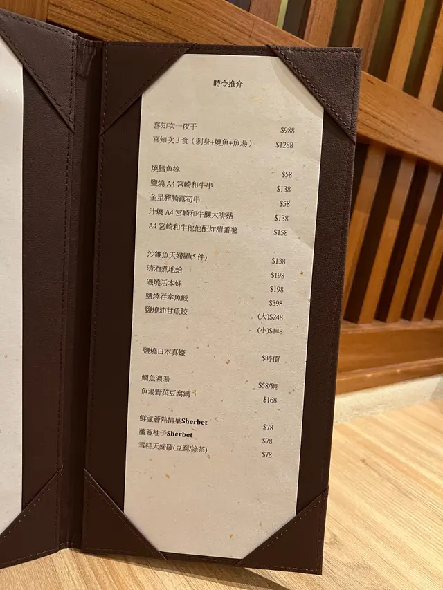 食物種類幾多,除了有固定的menu 牌,也有時令食物,係廚師特別推介