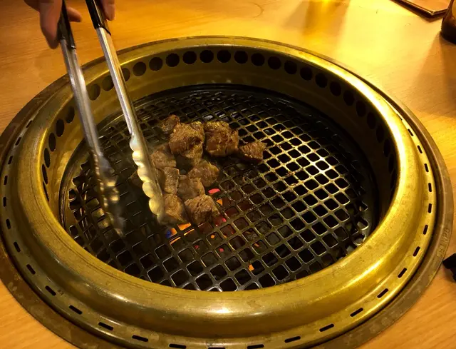 接著,店員便幫我們燒牛角切,原來燒方塊形狀的肉類是應該在鐵網上快炒。牛角切的牛味同樣濃郁,啖啖肉,內裡非常juicy。