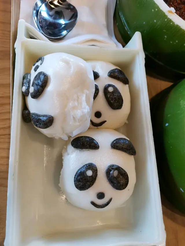 本人對中式包不算太喜愛,而熊貓🐼的造型成功吸引孩子,孩子點名要求要吃這個包。我本身沒有品嚐它的味道,但孩子一口氣吃了兩個,可見味道不太差😆。