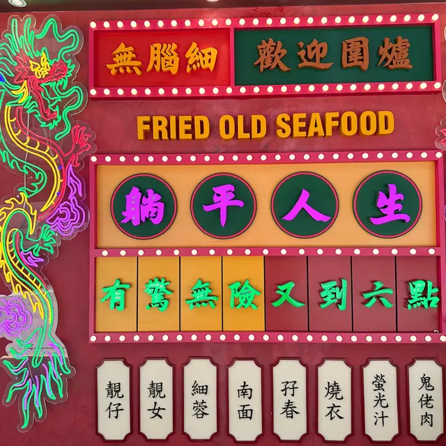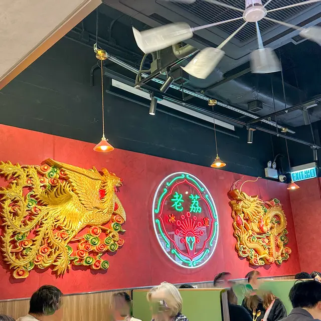 就係呢間門口已經好搶眼既「老荔冰室」,餐廳設計可以話新舊交替,有好多香港元素,包括戲棚紅紅黃黃嘅燈光、傳統酒樓嘅龍鳳牆、牆上寫嘅大字、搞笑嘅slogan等等,成個環境都幾得意㗎🤣除此之外,連啲杯杯碟碟都寫咗金句,等大家發掘下😛