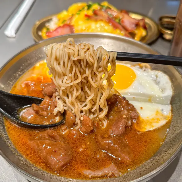 必點沙嗲牛肉麵,其實沙嗲都幾濃郁,味道但係有啲甜味,食食吓又覺得有微微麻辣嘅感覺,牛肉好淋份量好足,真係唔錯~唔想食麵都可以配搭沙嗲牛肉餐蛋飯。