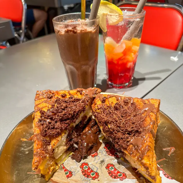 另外Menu仲有好多選擇,下午茶時間勁想食西多士,呢度有金沙朱古力流心西多士,超大件,又邪惡😈好彩可以同朋友share😂切開有朱古力醬度少少流心啦,面頭仲有朱古力脆脆,西多都幾香口,間唔中食吓都幾開心😙