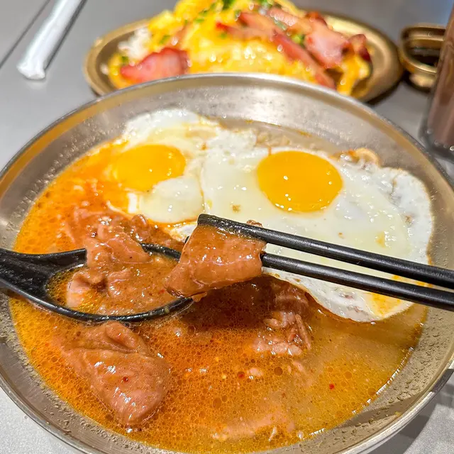 🔸午餐肉炒蛋熱香餅漢堡