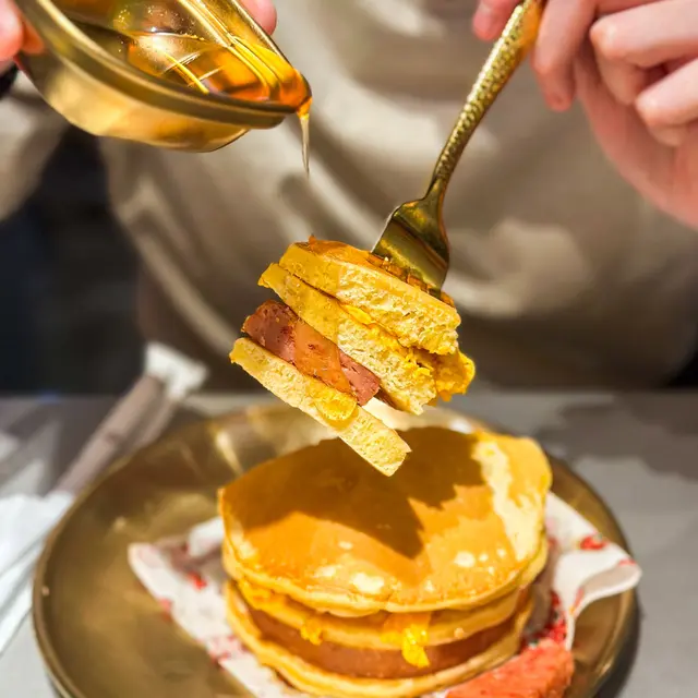 另外見到最多人叫嘅係熱香餅漢堡,我哋揀咗午餐肉炒蛋,即叫即製,都幾香蛋香味,成個漢堡好厚身,加上楓糖漿,鹹鹹甜甜都幾好食。