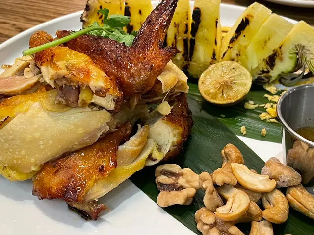 另一個要等20-30分鐘嘅燒雞都有啲驚喜,如果可以排返靚啲會再好啲,仲有燒波蘿配埋都唔錯,皮係香脆的