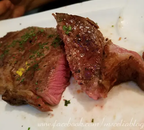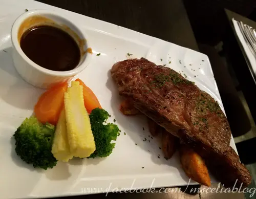 老公點咗280克美國頂級肉眼牛扒配燒汁 $208, 足足有10安士嘅肉眼好足份量, 外脆內嫩, 剛剛好係叫嘅5成熟, 好多汁, 牛肉味濃, 跟炸薯角.