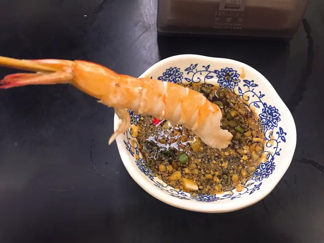 基圍蝦下是蝦農飼養的,肉質鮮美。放下湯燙兩下就熟了,肉質彈牙清爽,再蘸醬料令滋味升級