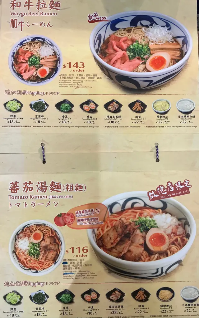個餐牌本身幾大個,揭起睇時真會有點唔方便 。 食物唔算有太多選擇,原本打算嚟試吓呢度嘅沾麵, 最後都係叫咗兩碗湯拉麵。 蕃茄湯麵 (粗麺),另一碗周月拉麵,兩碗麵送到面前,聞起來非常之香。