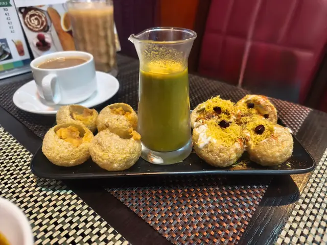 呢個脆米球係餐廳推介,薄薄一層嘅脆米球外層脆卜卜,印度脆米球裏面有薯仔蓉,豆泥,淋上綠色嘅湯汁一齊食。
