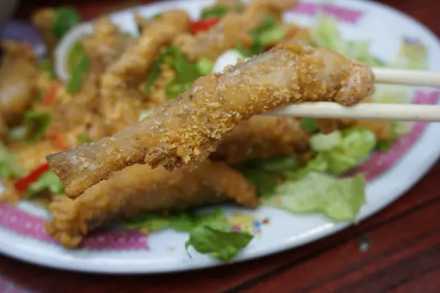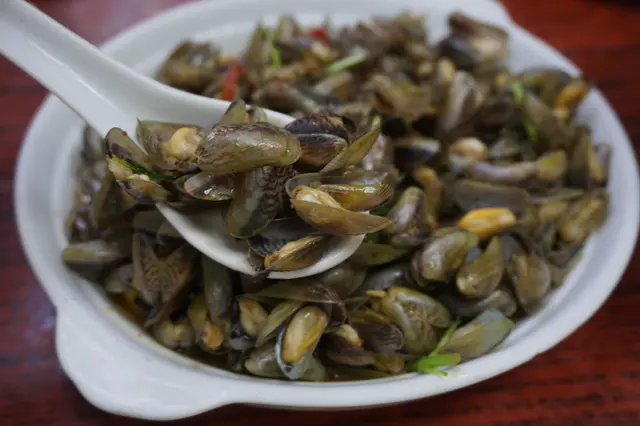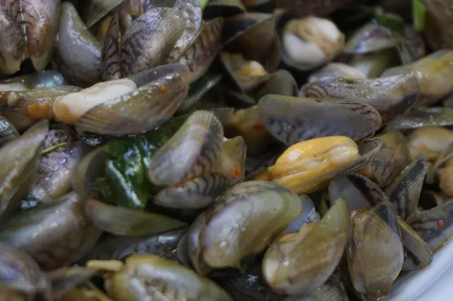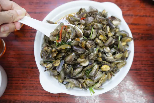 金不換炒薄殼($80)是可遇不可求,瑞午節後開始應市,至中秋節是最肥美的時節,故瑞午前夕遇上可說是緣份。薄殼又名海瓜子,是潮汕特產屬貝類的一種,殼薄肉細鮮甜。