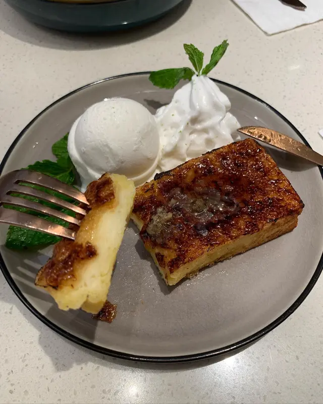 多士既表面有一層用好厚火燒過既焦糖,不過真係過左火🥲🥲🥲食落去硬得黎仲要有苦味,食到一半個陣,層焦糖同塊多士開始分離😔重點係愈食愈甜😞就算加埋椰子雪糕同埋d cream食,都幫忙唔到成件事🥺