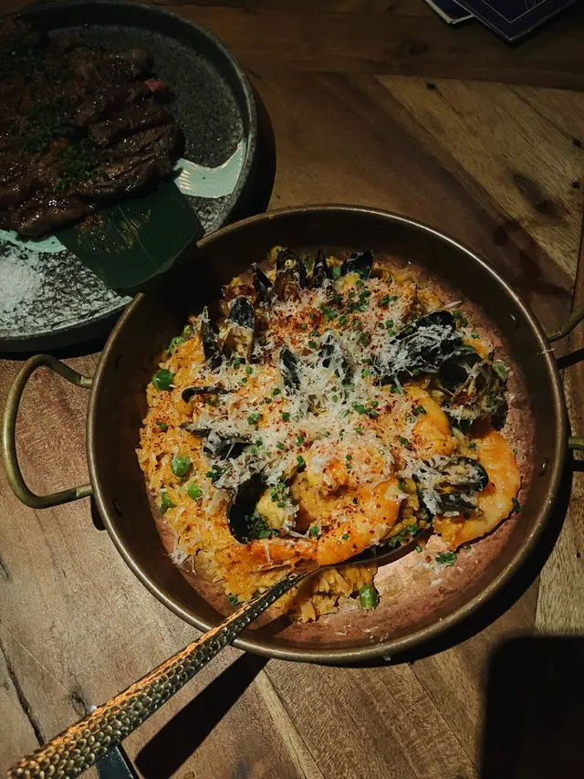 呢道傳統秘魯海鮮燉飯鮮味十足 每啖飯都係海鮮高湯精華😍大蝦、魷魚、青口等海鮮肉質彈牙,燉飯醬汁帶有淡淡的黃辣椒味、奶香和檸檬香,有啲似西班牙燴飯,好惹味