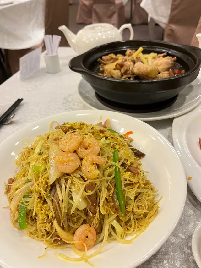 中菜館都炒到咗有鑊氣嘅星洲炒米,仲有大量嘅蝦仁、叉燒絲、蛋花、洋蔥🧅等等,米粉炒得都算乾身同口感夠彈牙,而且調味均勻,加埋辣醬一流😋