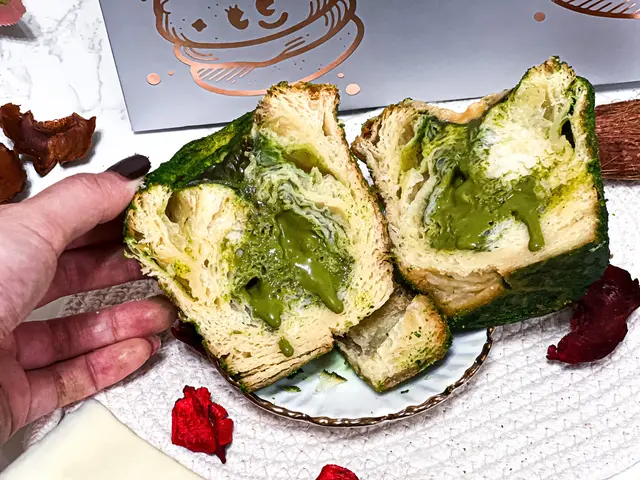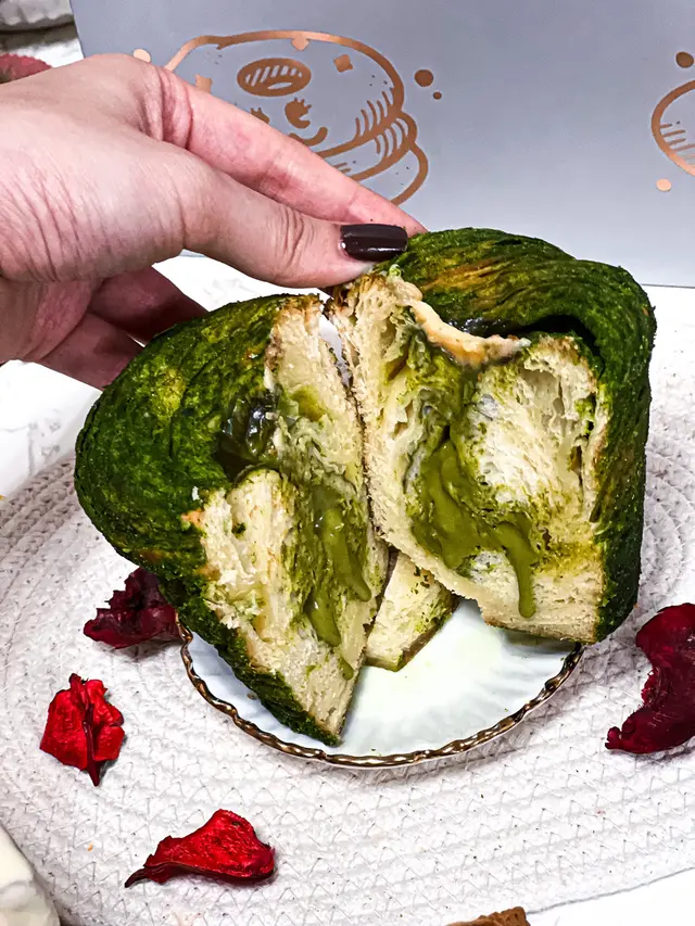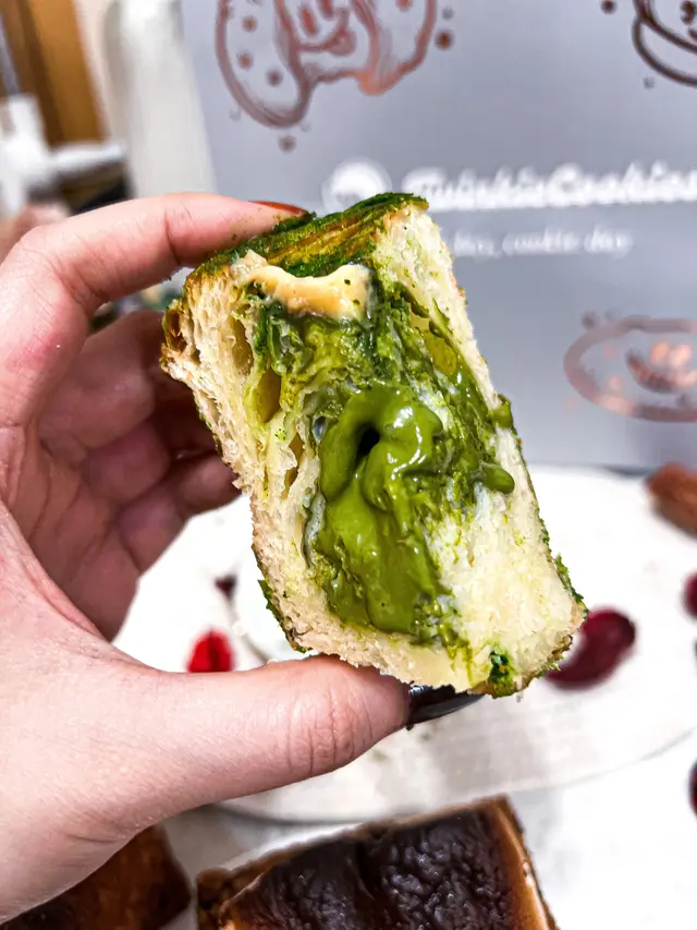 牛角包鬆脆,內裏藏有滿滿開心果醬💚
