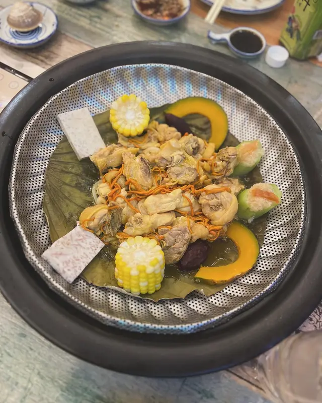 蟲草花蒸雞原汁原味, 雞肉口感鮮嫩之餘, 還夾雜着蟲草花的香味