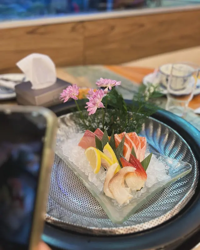 好快就上咗一盤刺身, 色彩繽紛好吸睛呀, 擺盤好靚仲有希靈魚食, 魚身附有粒粒黃色的魚籽, 喜歡它的口感爽脆, 魚籽帶出的味道好鮮甜