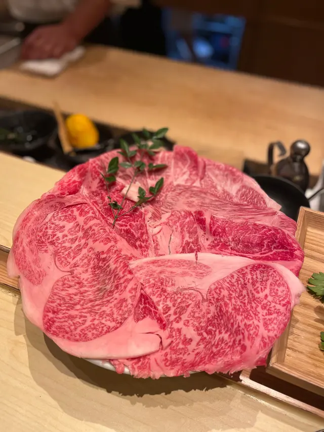 ✅✅✅用上近江A4和牛的三個部分組成,西冷、肉眼同肩胛。每人大概有3-4片,呢個份量啱啱好。師傅會根據食客進度一步一步煮。白飯可以任添,個人覺得最多添一次就好了!留肚食最後的飯🤩 食邊個部位都有分先後次序,同配搭的蔬菜。廚師會將d好肥的邊都先切走,好仔細🥹