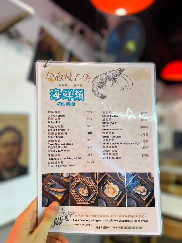 今日放工食個晚餐呢間餐廳感覺有種深夜食堂既感覺🌙店面嘅霓虹燈配上懷舊嘅電影裝修🎬有種港風嘅味道😚 食物方面即叫即燒嘅串燒真係好有水準❤️睇得出用心嘅燒物味道同火候控制得好好🫶🏻 特別推薦佢嘅海鮮每日嘅材料新鮮限量而且價錢好親民真係性價比好高呢🌊