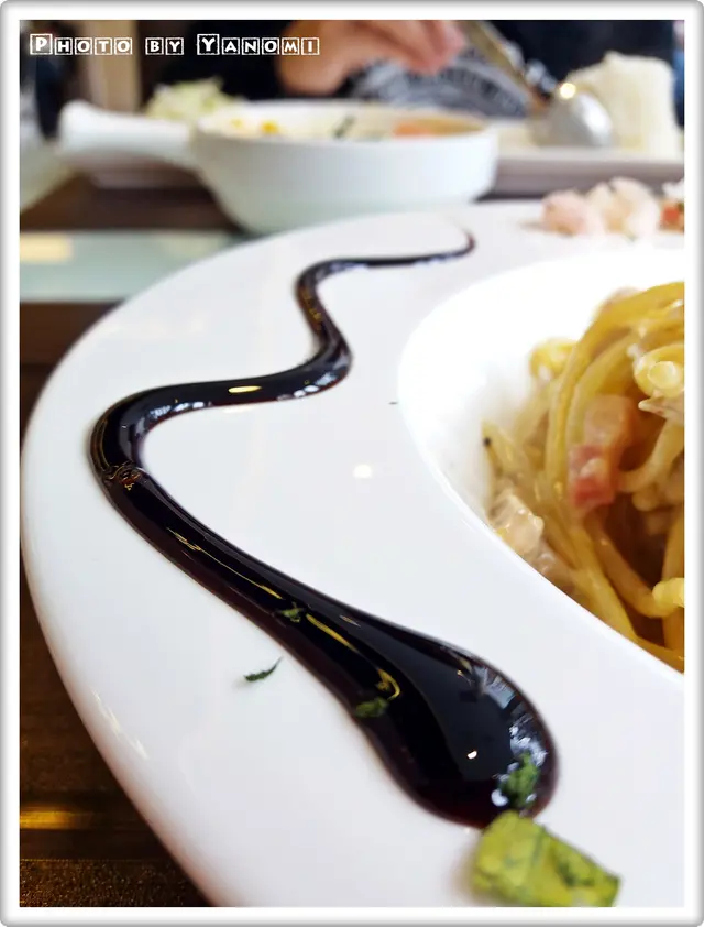 白汁始終比較易漏~廚師仲細心係碟邊..再伴上黑醋