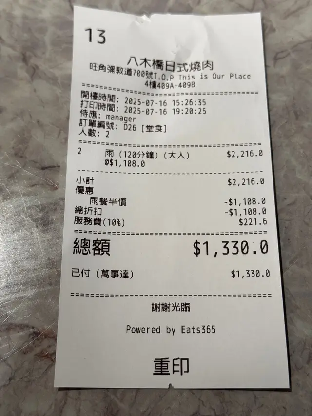 連埋加一$1,330/2人