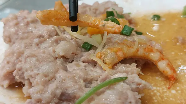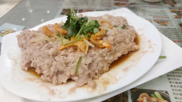 “蝦乾王咸蛋蒸肉餅”,鋪面芫荽枯黑,不如不放,失敗。可幸蝦干夠咸鮮,加上咸蛋黃,所謂鹹魚淡肉,配蒸豬肉是不二之選,只是號稱蝦乾王的只不過是大粒點的蝦米,或公平點,是蝦乾BB,咸蛋黃一樣,薄薄一片,超迷你。而肉餅呢,算合格,但口感失奉,完全不吸引。