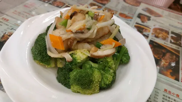 “西蘭花斑片”,班片味道還可以,但西蘭花淡而無味,還帶點開水味,應該是灼熟後馬上擺盤,然後再放炒好的魚在上面,魚裏雖然有點配菜如冬菇絲、韭黃、洋蔥,賣相不錯,但菜沒落鑊炒過,怎麼可能?!最後,我要自己下點鹽,娘娘還贈了它一句:「嘩,當堂將啲西蘭花提升左個層次!」