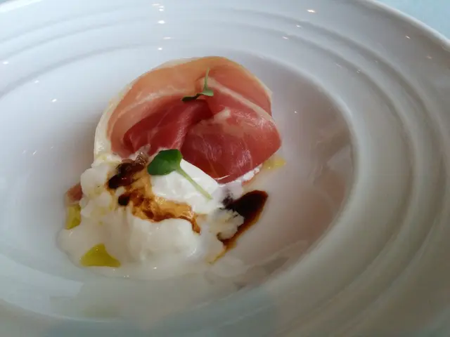 到了正式起菜,先來的是pre-appertizer, 不是在我們order的食物中。那是prama ham配水牛芝士,用上少許廚師珍藏的陳醋,prama ham有淡淡的鹹香。
