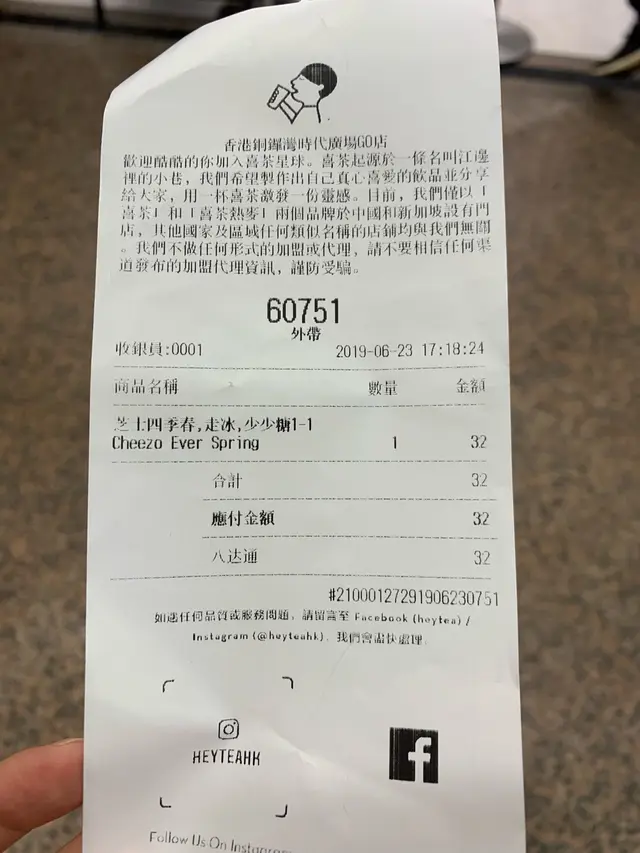 叫咗個走冰, 少少甜嘅芝士四季春, 大概等左20分鐘就有得飲喇, 比我想像中快 個芝士係好味嘅, 比起我之前飲嘅其他同類型飲品, 喜茶係做得比較出色, 雖然飲完之後感覺非常有罪惡感😈 唯有時候做運動補返數啦😅