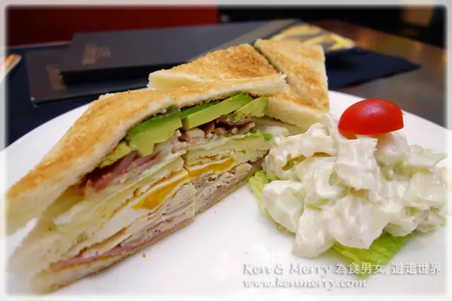 公司三文治?!! 明明好飽, 點解... 不要問, 只要吃... 估唔到... 食落又幾好味喎, 材料豐富又夠新鮮, 最正係有牛油果, 同埋隻蛋切開咗蛋黃同蛋白仲咁鮮明, 伴碟的薯仔沙律都好好食... 食埋佢今晚真係唔使食飯...
