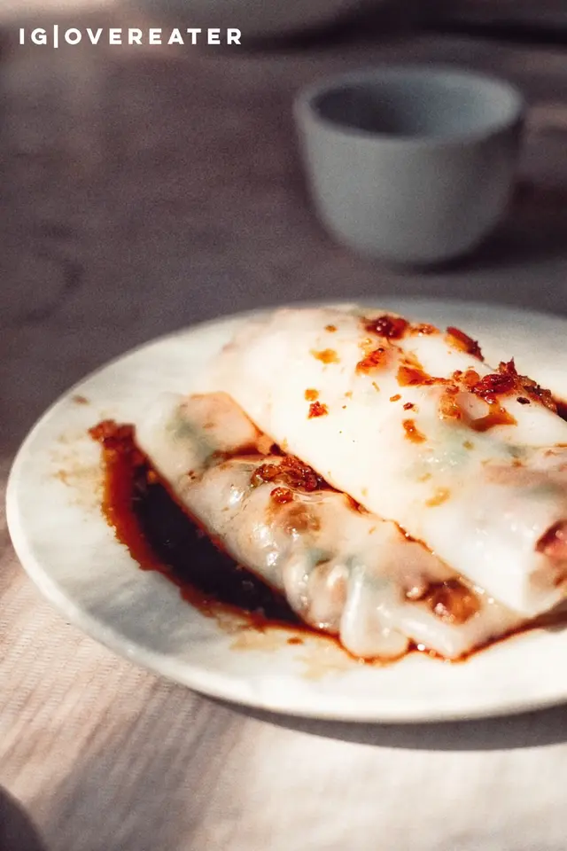最後也找到了叉燒腸粉。亮點是澆上乾蔥調的豉油,寧舍香口。因為那蔥油,腸粉也顯得份外滑溜。茶客也對此醬油很是鍾愛,看到有人把吃完腸粉的豉油淋在盅飯上調味。